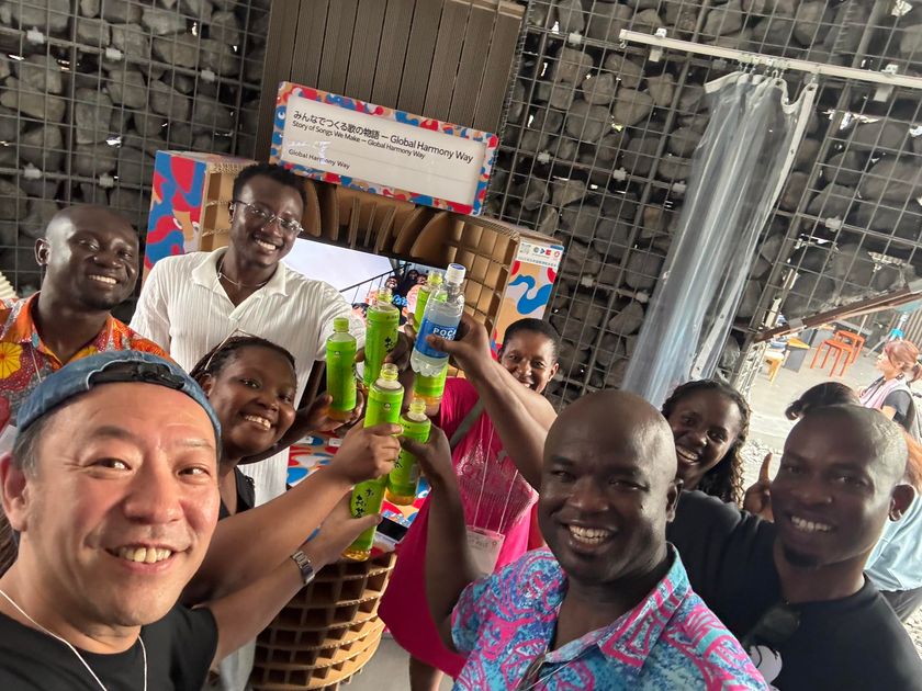 説明員をしたインターン生の声「フューチャーライフヴィレッジ・パビリオンでの時間を本当に楽しみました。 プラスチックごみの回収やリサイクル促進に関する取り組みを発表したり、ペットボトルからできたバッグを紹介する機会を得て、来場者や他の出展者の方々と有意義な議論を交わすことができました。」(Fathia Jombi Khei)