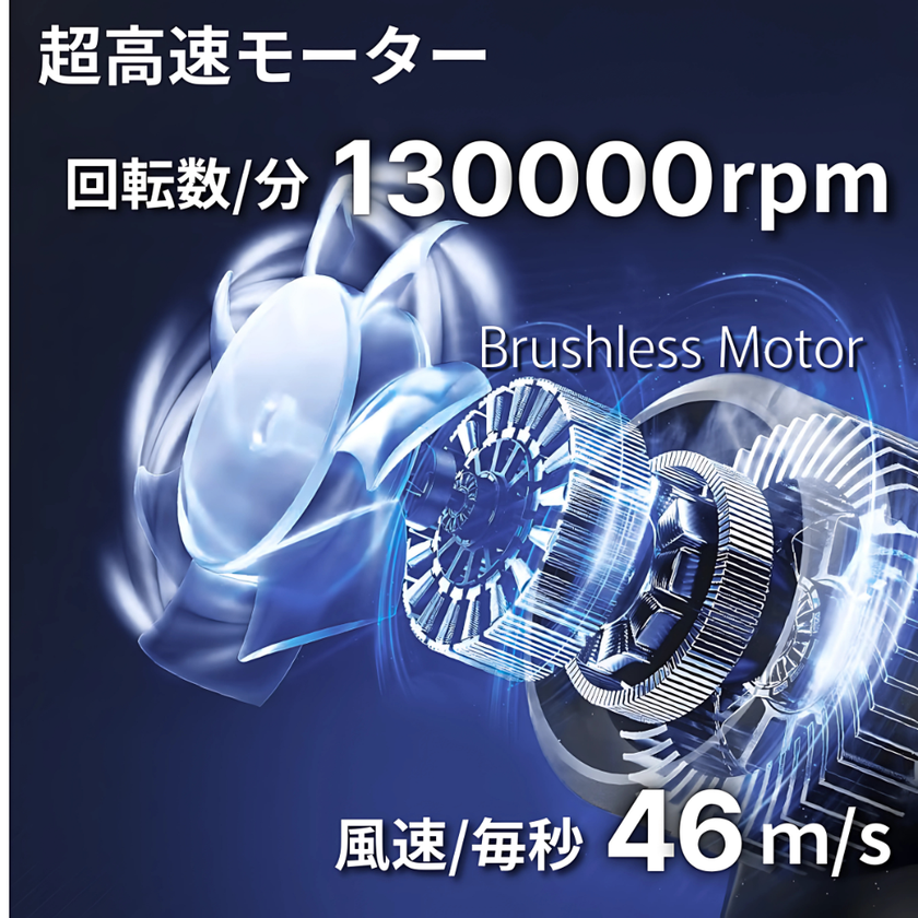 <特徴1:最大130,000rpm・風速46m/sの圧倒的パワー>