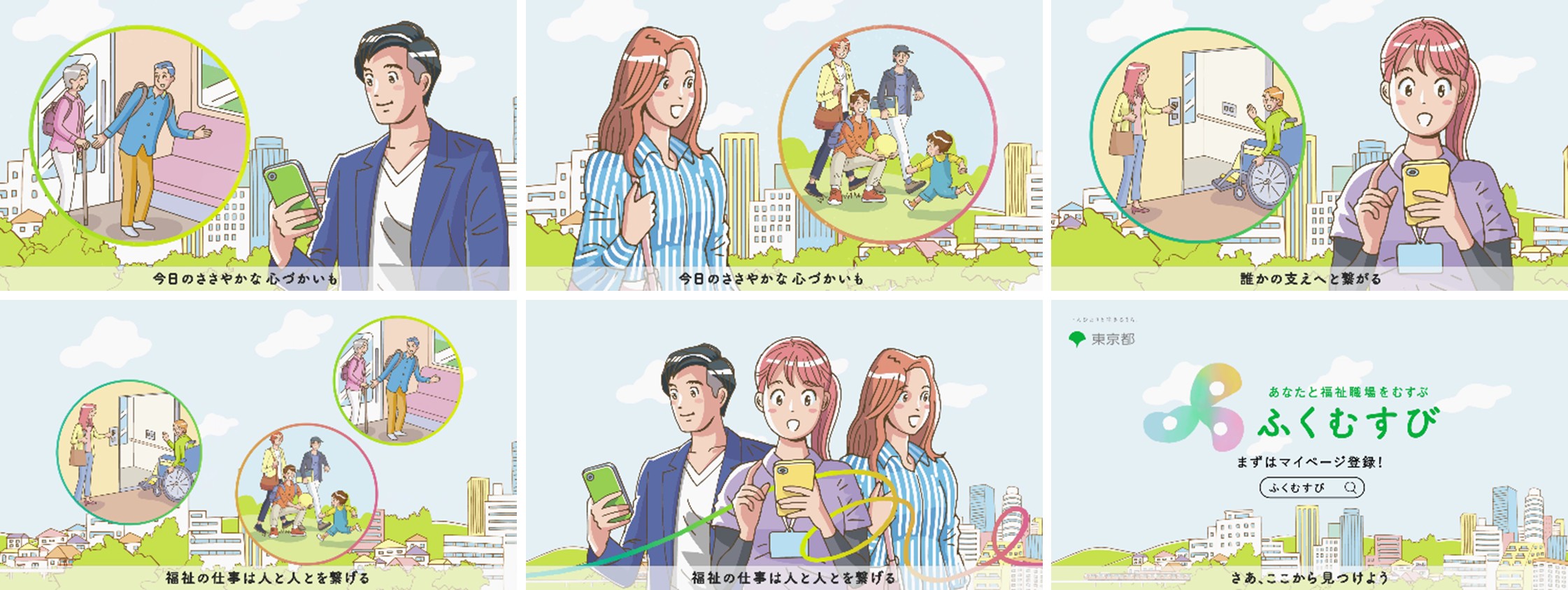 「ふくむすび」とは、あなたに必要な東京都内の福祉職場に関する情報が見つかるサイトです。