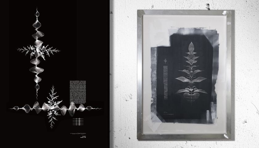 本展では、国内外で受賞・注目を集めてきた代表作に加え、AIのプロンプトを盆栽の"治具"と捉える発想から生まれたプロジェクト「PromPlant(R)」の新シリーズ《HeatBeat》を15点、アメリカで初公開します。自身の心臓の音を波形としてプロンプトに変換し、植物群を生成。さらにシルクスクリーンの道具と融合させた絵画作品です。