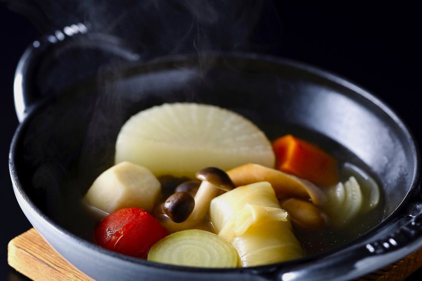下鴨茶寮こだわりの出汁パック「料亭のお出汁」を使用し、王道の和風おでんと、ポトフのように野菜の旨みが溶け合う洋風おでんの2種類をご用意。京都らしい繊細で上品な特製出汁は、最後の一滴まで飲み干したくなる味わいです。