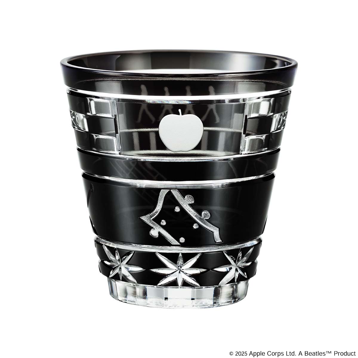 背面にはアップル・レコードのマーク。グラス下部には、ユニオンジャックをイメージした星文様のカットが連なります。