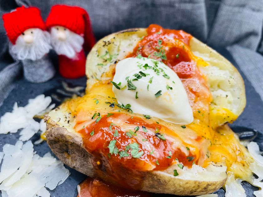 ジャケットポテトwithサワークリーム 溢れるクリスマスチーズ掛け