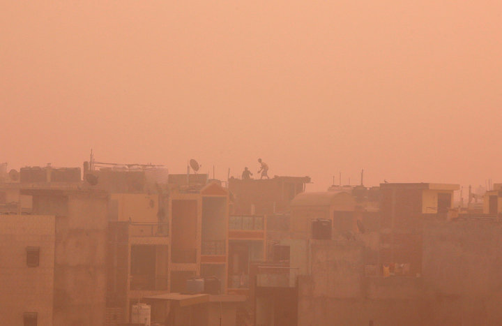 周辺の州にある農場の野焼きによる煙やヒンズー教の新年を祝う祭りの花火、建築現場からのほこり、自動車の排気ガスなどにより、直径2.5マイクロメートル以下の微小粒子状物質「PM2.5」のレベルが、安全とされる基準の15倍以上に達している。