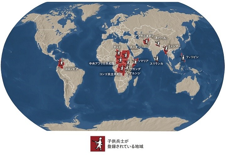 18 歳以下で軍または武装組織に所属し、直接または間接的に戦闘に参加する兵士を子供兵士と呼ぶ。世界では約25 万人おり、うち3分の1以上がアフリカだ。アジアでは、ミャンマーが5万人ほどの子供兵士を雇っていると言われ、この数は子供兵士のいる国では世界一である。