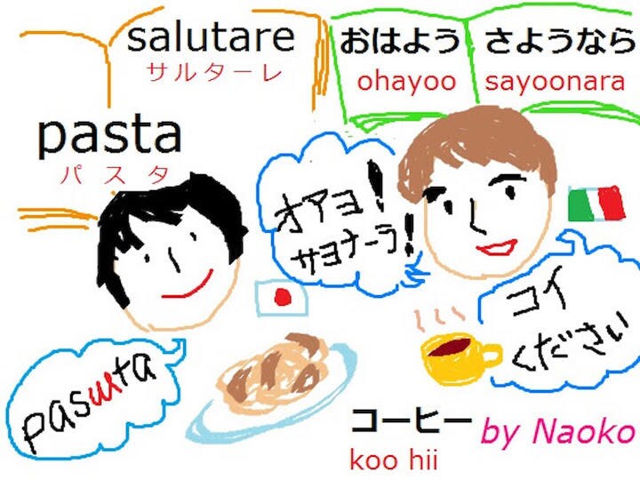 裏を返して、イタリア人が、知っている日本語の地名や、見聞きしたことがある日本語のあいさつなどを発音するとどうなるか、見てみましょう。