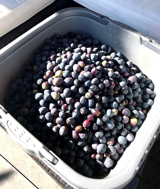 この共同組合なのですが、秋になるとどうやら業者やプロフェッショナルな生産者以外の一般家庭の方々が自家用車の荷台や後部座席にカゴいっぱいのオリーブを持ち込んでいるのを見つけました。最初の年はわからなかったのですが、今年はチャレンジしてみようということで事前に下調べをしたところ「とにかく最低重量である15kgを持っていくと受け付けてくれる」ことがわかったので、とある週末に家族で庭のオリーブを摘むことにしました。