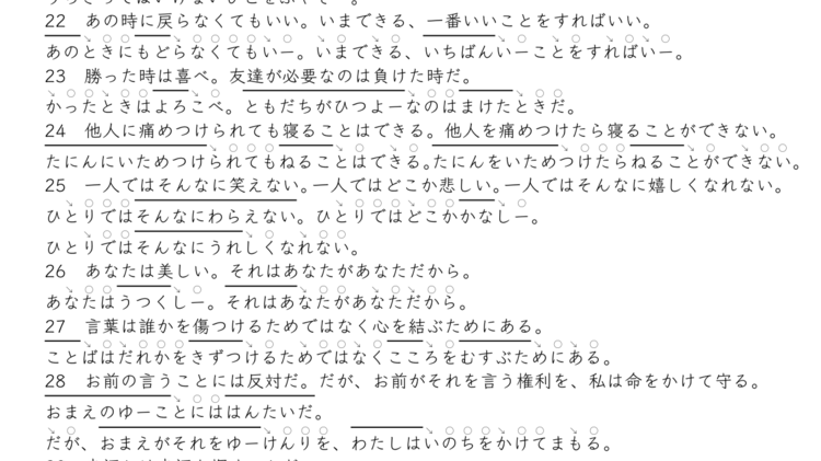 教師が学生になったつもりで「楽譜」をつけ、私が採点・添削して、何度もやり直すという、これまで経験したことのない舞台を提供していただいたことで、映画を作る映画監督を育てるような仕事をさせてもらっている。多くの参加者の頭の中には、まだチェックポイントが書かれた表が入っていない。その表とチェックシートをこちらが提示してもすぐ消化できるはずもない。かなりの時間が必要となる。ただ、今は実験段階だが、二ヶ月が過ぎ、すでに楽譜の付け方をほぼマスターできた日本語教師が10名ほどいる。