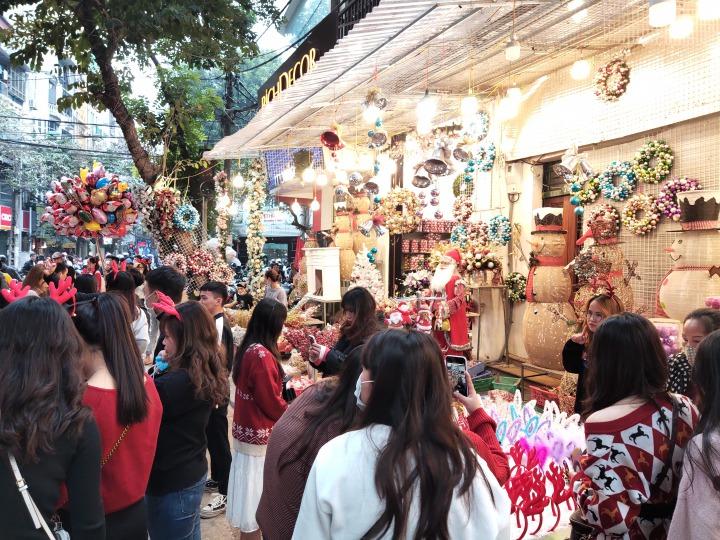 旧市街のHàng Mã(ハンマー)通りはクリスマスの飾りを買う買う人々で賑わいます
