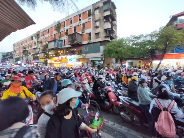 ベトナムのラッシュ時間は朝と夕方。ラッシュになると車道から飛び出し歩道をバンバンバイクが走る。しかし、通常なら違反だろうがこの時間だけは大丈夫なのだ。(筆者撮影)