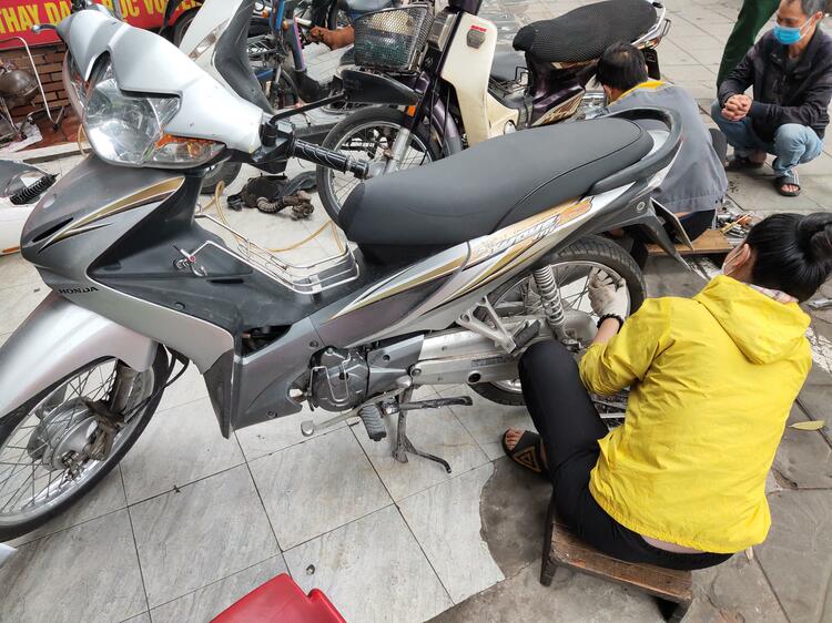 ベトナムはバイクが生活必需品なので、街のいたるところにバイク修理屋があるのです。