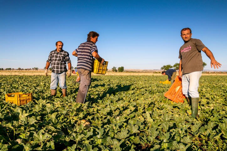過度の労働条件を受け入れることを余儀なくされた農業労働者たち。国籍で多いのは、ルーマニア人(約14万人)で、以下ウクライナ人、モロッコ人、アルバニア人と続く。