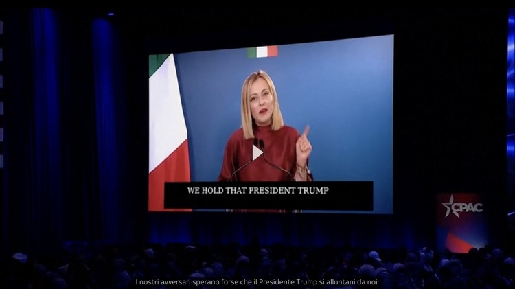 ジョルジャ・メローニ首相は、2025年2月22日に開催されたアメリカの保守派政治活動会議(CPAC)にビデオ出演し、イタリアとアメリカの結びつき、そして欧米同盟の重要性について力強い演説を行った。