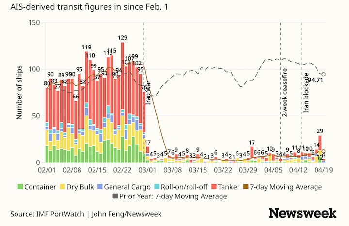 英国の貨物追跡会社ボルテクサによると、4月13日に米国の封鎖が始まって以降、少なくとも34隻のイラン関連タンカーが制限を回避している。