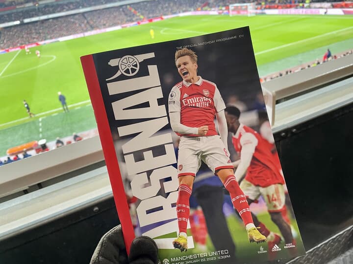 観戦したのはアーセナル対マンチェスター・ユナイテッド(以下「マンU」)の試合だ。日本の冨安健洋選手もプレーするアーセナルは、今シーズンずっとリーグのトップを走っており、対するマンUはこの試合の時点でリーグ第4位(この記事の時点では第3位)で、おおいに注目された試合だった。