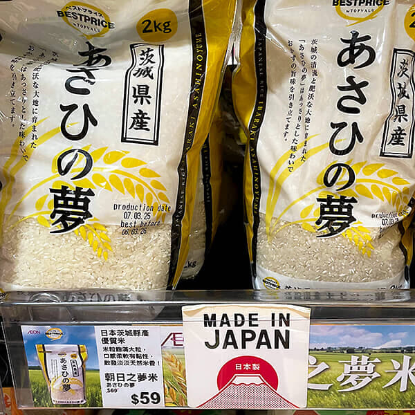 イオンで最安値だった茨城県産「あさひの夢」2キロが59香港ドル。日本円換算で1079円。
