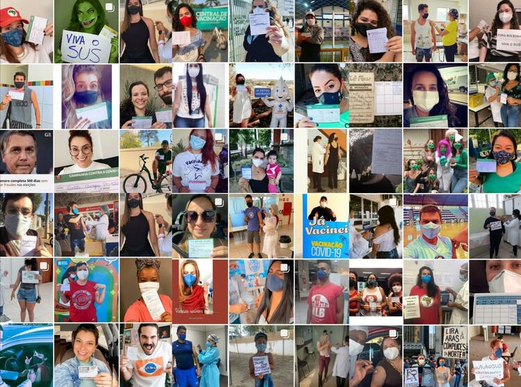 接種時の様子や、接種後に受け取るかっこいいサンパウロ州オリジナルの接種カードを手にセルフィー写真をFacebookやInstagramなどにアップする人たちは、#vivaosus(ブラジルの医療システムへの敬意)や、#forabolsonaroというボウソナロ大統領の辞任を求めるハッシュタグをつけている。最近このハッシュタグはエスカレートし、#foragenocidaと、大統領を大量虐殺を命じた人と表すものも使われている。