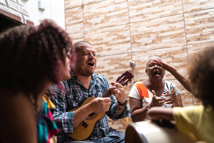 サンバチームの集まりから、テレビ番組、親戚たちとのパーティーなど、あらゆるところで聴き、踊ることができるため、決して年に一度のカーニヴァル中だけ現れるものではない。
