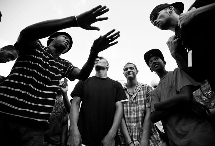 同じスラム街で誕生したリオデジャネイロの音楽文化ファンキ・カリオカ*と異なるのは、ファンキ・カリオカが元々コミュニティ内での楽しみのために作られていたのに対して、ラップ、そしてHip-Hopは最初からコミュニティ全体の外に向かって表現をしていた点だろう。