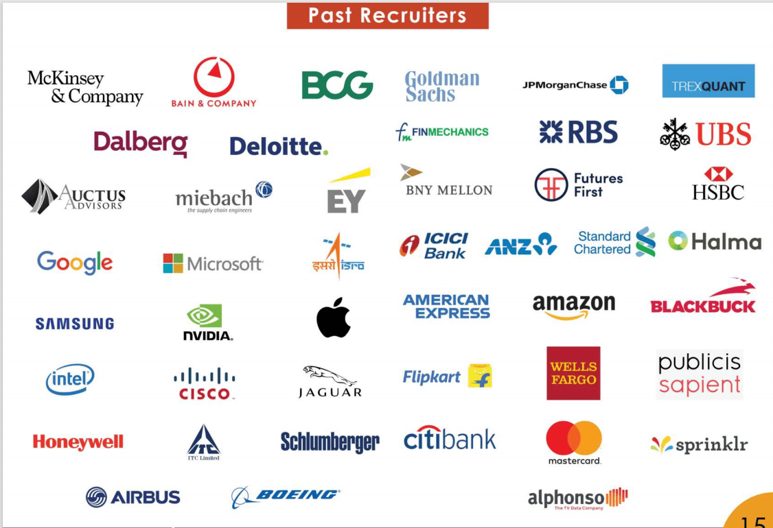 以下はIITチェンナイ校のキャリアセンターからの資料ですが、過去にキャンパスリクルーティングに参加した企業が掲載されています。見事に大手&外資ばかりです(笑)