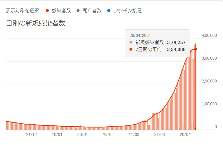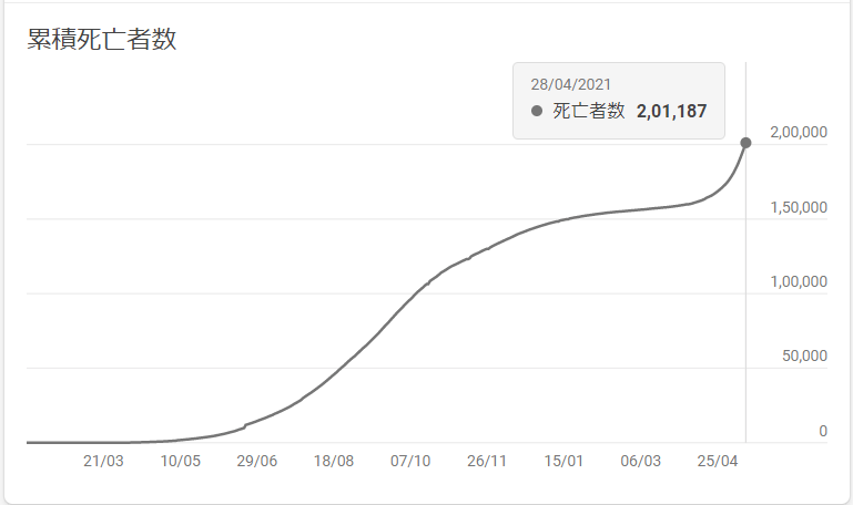 医療用酸素、火葬場、病床の不足が報道され、「深刻な状況」と報じられていることが分かります。
