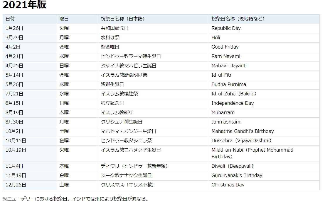 上記の図を見てみると、8月にインド独立記念日、イスラム新年、10月~11月にヒンドゥー祭事と、めでたい祭事が続きます。