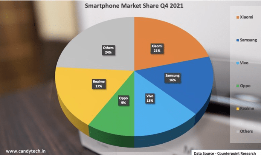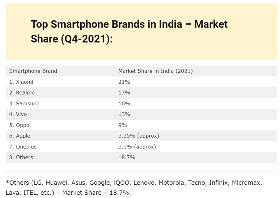 (グラフはSmartphone Market Share In India (2022) - Report (candytech.in)から引用。)