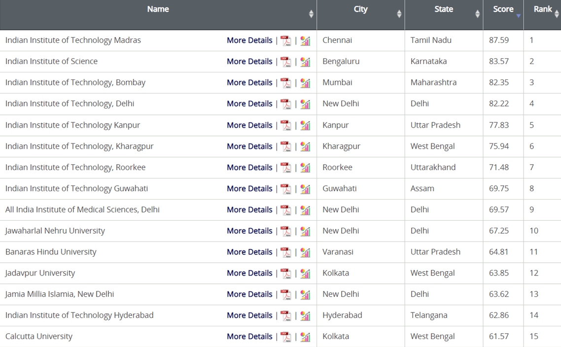 <''National Institutional Ranking Framework''のランキング>