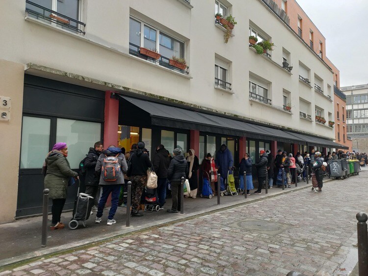 そもそもパリ自体、そんなに大きな街でもないので、それでも日中のパリ市内なら、気を付けてさえいれば、そこまで危険な目に遭うこともそんなにはありません。ところが、先日、「ここ!行ってみたい!」と思うパティスリーがあって、出かけた時のこと・・。そのパティスリー自体は、行ってみると、あまりにキラキラした店舗で、私は「ん~!これは違うかな・・?」と早々に退散したのですが、その道すがら、何やら、その脇道に長蛇の列があって、しかも、その様子がふつうに人気店にできるような行列とは感じが違うし、「一体、何だろう?」と思って覗いてみたところ、それは、「食糧配給所」でした。