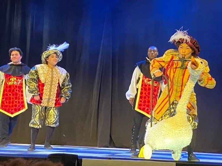 「ショー全編でパペットやるのは、初めてだったのですが、 舞台上にいても共演者と目を合わせられないんです。 しかも、黒子の衣装ではなく、私のお気に入りとなった素敵な衣装だったので、自分のエゴを捨てて存在をガチョウに移すのが、初めはやや大変でした。