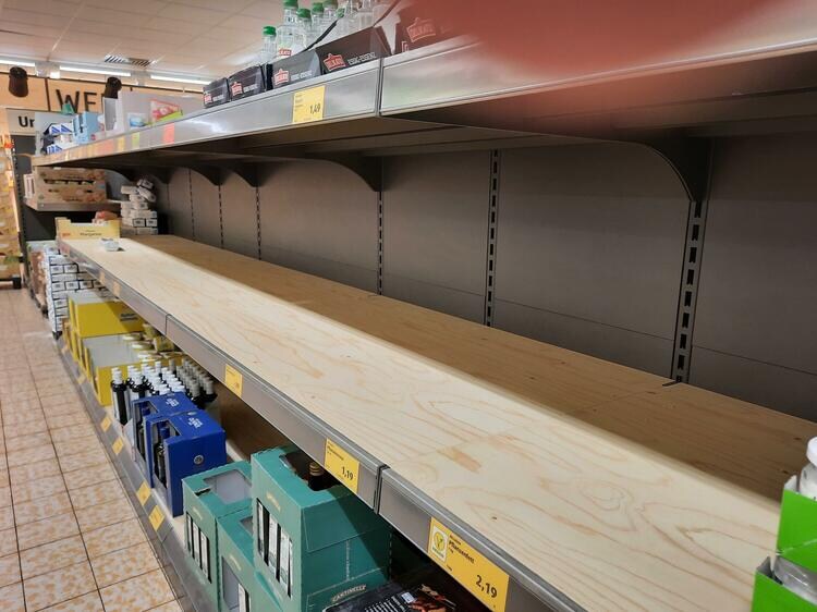 ドイツのスーパーマーケットやディスカウントストアでは2月末頃から、小麦粉や食用オイル(ひまわり油、菜種油)の棚が空になっていることが珍しくなくなった。品薄ではなく、商品がないのだ。