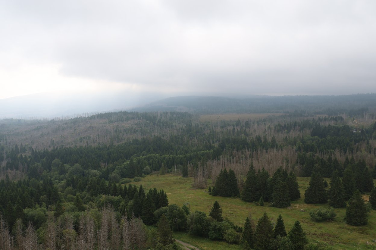 ハルツ展望タワーから見下ろす光景は、美しいとも悲しいとも言い切れない。灰色の木々と新緑の芽吹きが交錯する風景には、地球のいまがそのまま刻まれている気がする。