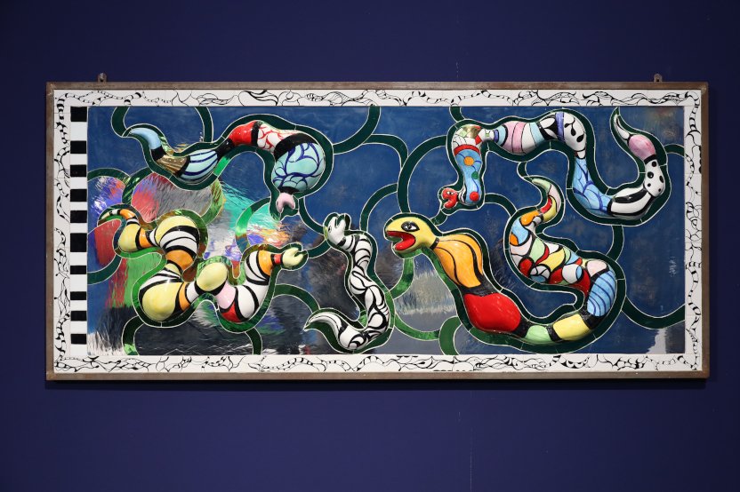 12の展示室はテーマごとに構成され、「愛」「ニキの初期作品」「モンスター」「セクシュアリティ」「消費」「ユートピア」などの作品を並置している。