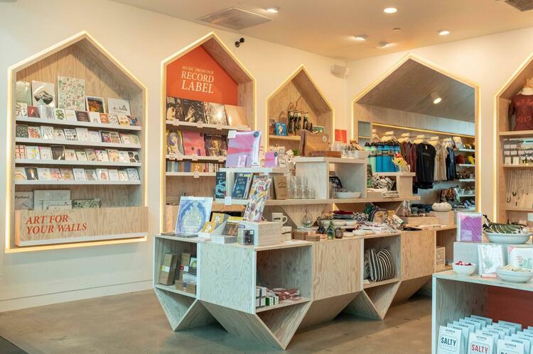 ポートランド空港でもひときわ目立つ、ポップでおしゃれな外観のお店。軽い空気感をまとった店内には、通常の土産店とは一線を画している様子です。