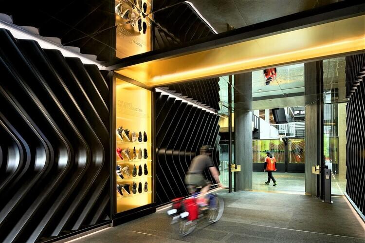 また、各所にも意味があります。例えば、ビルの最上階にあるスポーツリサーチ・ラボは、イノベーションへの継続的な献身を表現。メイン入り口から5mの高さにあるワッフルスラブのベースは、初期のナイキシューズの象徴であるワッフルパターンにちなんだもの。さらには、研究開発と商品試験のためのランニング用トラック、フルサイズのNBAサイズのバスケットボールコート、人口芝のトレーニングピッチなどが廻りに備えてある総合ビルとなっています。