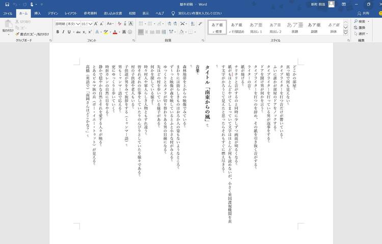 最後にこの映画「南東からの風」(仮第)の冒頭部分の脚本を公開します。