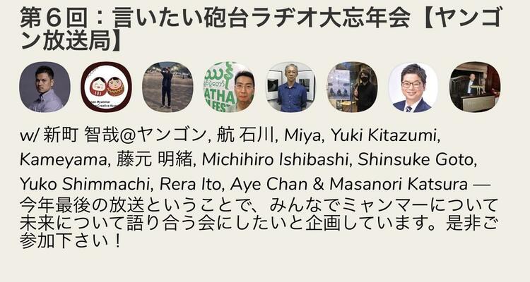 ミャンマーに興味のある方は勿論、今年ミャンマーを知ったという人にも意義のある情報をお届けする回にしますので、是非お聞き逃しなく。