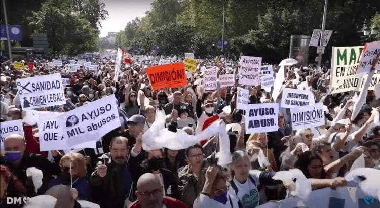 スペインの首都マドリードで13日、マドリード州の公共医療システムと州政府の運営に抗議することを目的とした大規模なデモ行進が行われました。デモ隊は人員不足に困る医療関係者と、それによって必要な時に医療を受けることのできない一般市民を中心に構成されており、参加者はおよそ67万5千人にのぼったということです。この抗議運動を受けて中道右派PP党所属のイザベル・ディアス・アユソ州首相は翌日、抗議活動を行う権利そのものは認めながらも「あれは公共医療についてのデモではなく、極左が新リーダー誕生を目論んで起こしたものだろう」「左派の汚いやり方だ」と、左派がデモを巻き起こしてマドリード自治州政府の評価を落とし、政権交代を狙っていると指摘するなど、デモ隊の訴えを全く無視するかのようなコメントを残しています。