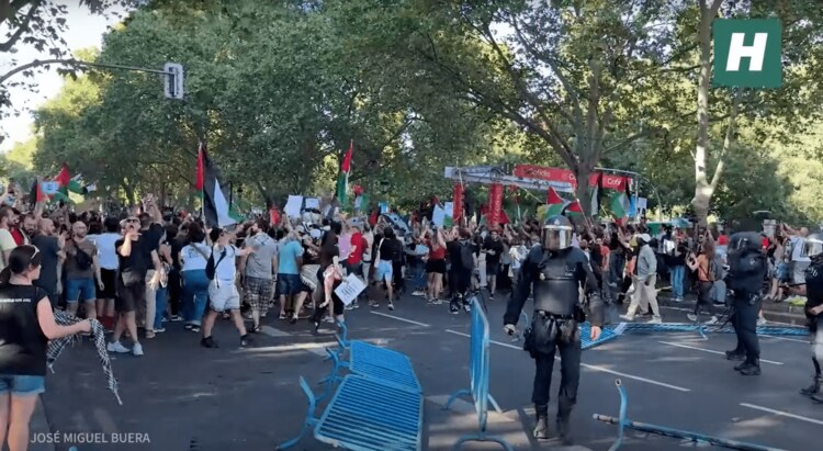 2025年9月14日、スペインで開催されるロードレース「ブエルタ・ア・エスパーニャ」の最終ステージがマドリードで中止されるという前例のない出来事が起きました。例年であれば首都の中心部を走る最後の区間は、すでに総合優勝を決めた選手を祝福する華やかな舞台です。しかしこの日、沿道を埋めたのは観客ではなく数千人規模のパレスチナ連帯デモの参加者でした。デモ隊はグラン・ビアなど主要道路を占拠し、警察が排除を試みましたが人の波は止まらず、バリケードが押し倒される場面もありました。安全を確保できないと判断した主催者は、最終的にステージ中止を発表しました。カメラに映ったのはゴールを目指す 選手らではなく、パレスチナ国旗と抗議の声に包まれた光景でした。