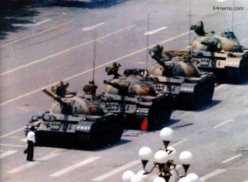 今年の天安門事件記念日には欧米では「タンク・マン」と呼ばれている、身一つで並み居る戦車を停めてしまった男性の映像(上写真)のパロディーが、たくさんインターネットに流れた。日本でも報道されたが、香港で人気の的になっていた巨大なアヒルを戦車とすり替えた画像などがそうだ。