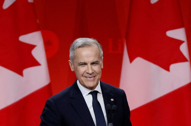 カナダ与党の自由党のマーク・カーニー党首(59)が14日、新首相に就任した。9日撮影(2025年 ロイター/Blair Gable)