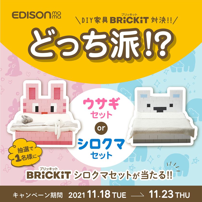 ベビー用品ブランド「エジソンママ」を展開する株式会社ケイジェイシー(本社・東京都品川区 代表取締役社長:崔(チェ))は、成長に合わせて組み立てられる子ども用DIY家具「Brickit(ブリキット)」の発売を記念して、Instagramキャンペーンを2021年11月18日より行います。