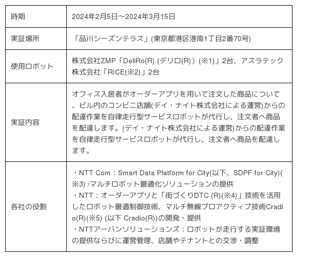 品川シーズンテラスでNTTグループの技術を複数活用したロボット配送実証を実施