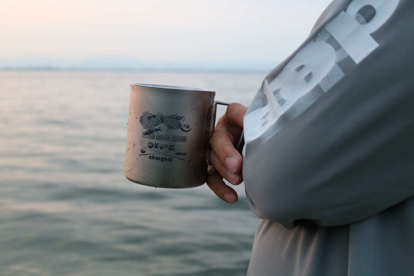 2.購入いただいた『チタンダブルマグ450』を使った写真を撮影。