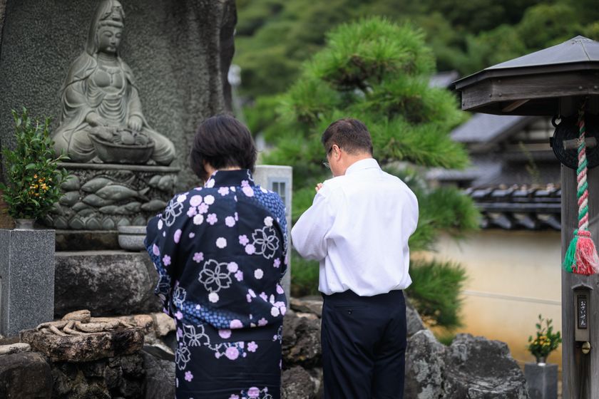 今回の記念企画を実施するにあたり、当館からほど近い福寿院に祀られている「魚籃観音」へ参拝を行いました。魚籃観音は魚籠を持っているのが一般的ですが、夕日ヶ浦の観音様は蟹を持っている珍しい姿として知られ、漁業や海の恵みを象徴する存在として地域の方々に親しまれています。この参拝を通じて、これまで当館が提供してきた「海の幸」への感謝と、今後もお客様に安全で豊かな旅を提供したいという思いを新たにいたしました。