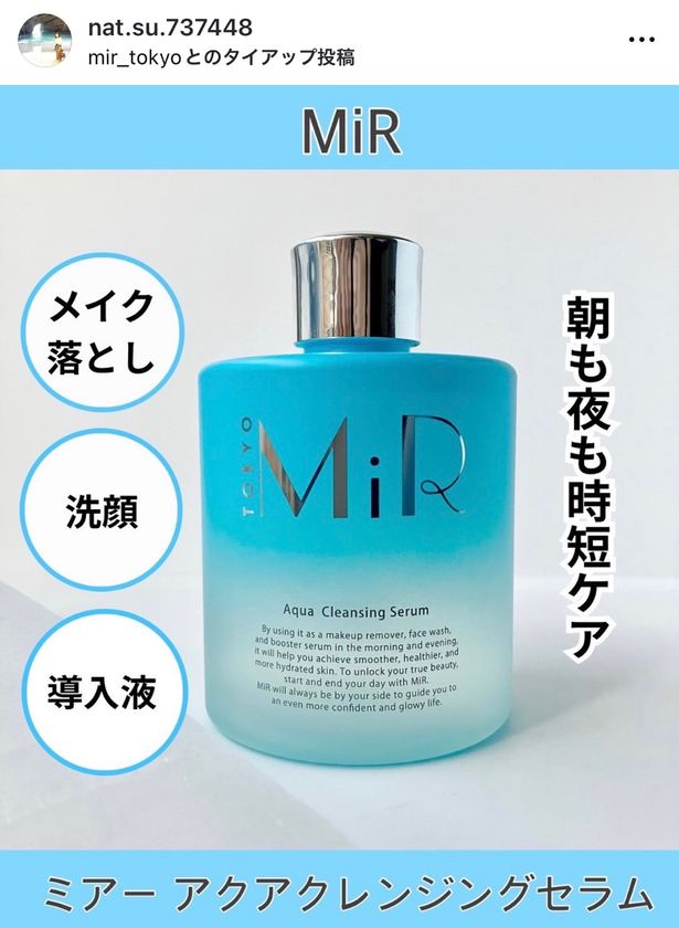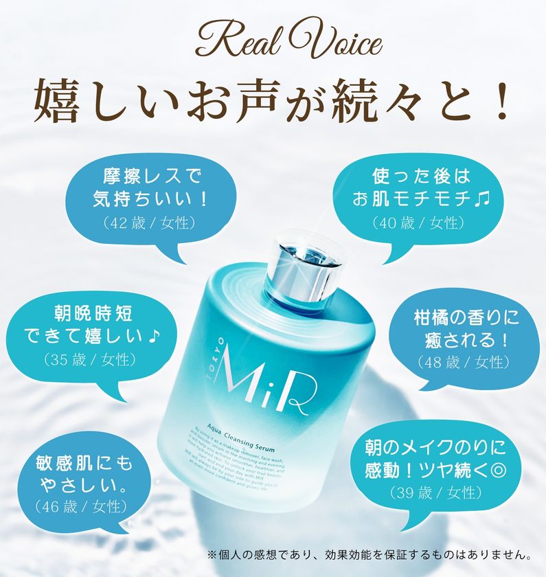 「MiR アクアクレンジングセラム」は、朝晩これ1本で使える、高保湿×摩擦レスな拭き取りクレンジング。さらに洗顔・導入液の3役を1本で叶える"3in1スキンケア"として、忙しい毎日でも「落とす」と「満たす」を同時に叶える新習慣を提案します。