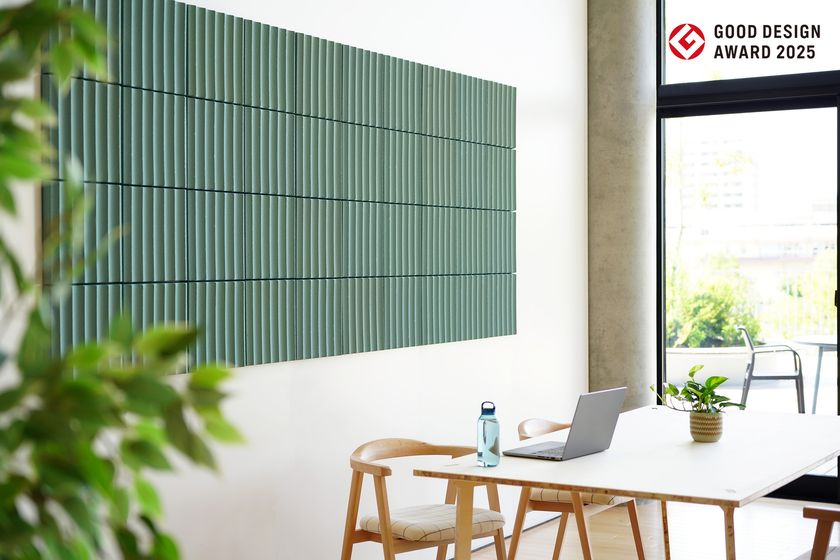紙再生材を100%使用したサステナブルな吸音パネル「REBORN PULP吸音パネル」が2025年度グッドデザイン賞を受賞 2025年10月15日(水)より先行予約開始