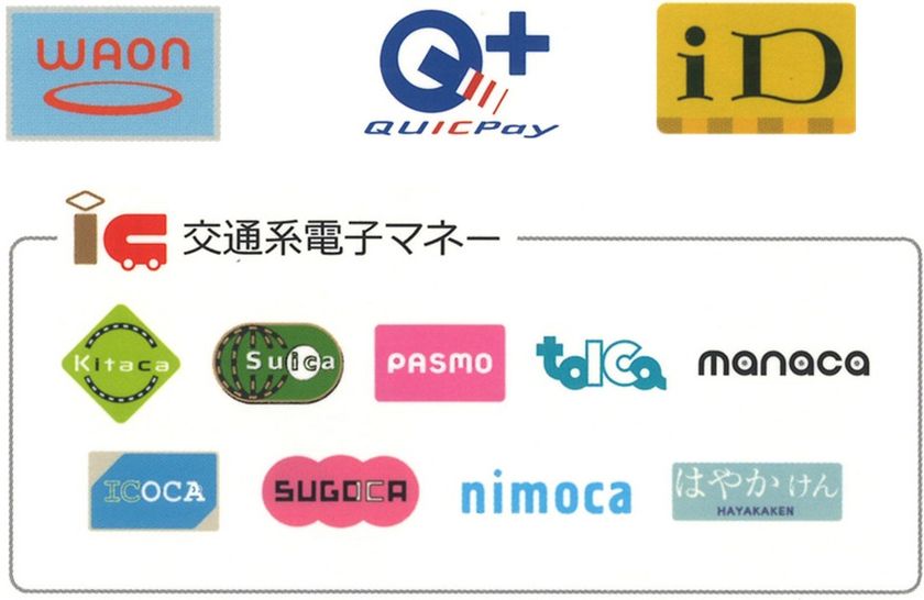 iD、QUICKPay、WAON、交通系電子マネー(Suica等)