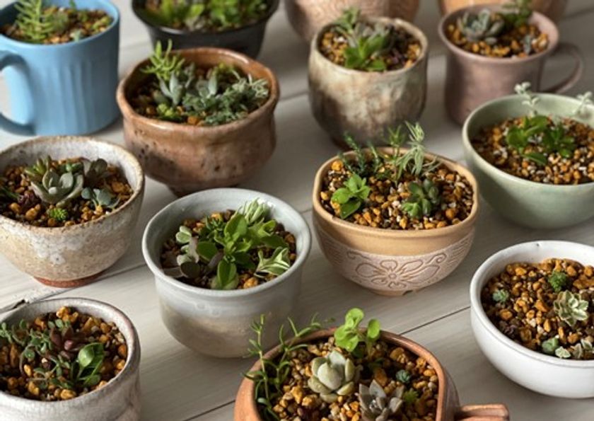販売会場でお好みの器を購入して、数種類ある多肉植物を選んで植えていただきます。