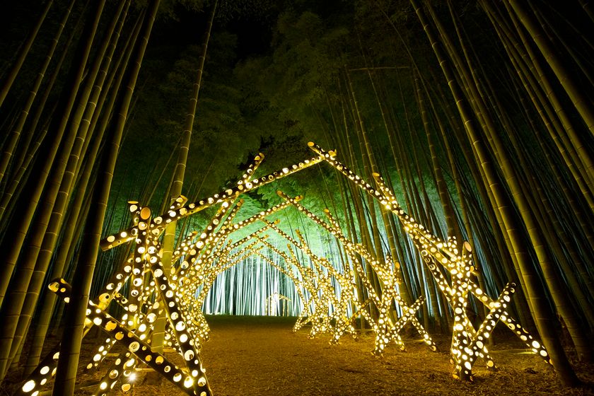 竹あかり総合プロデュース集団CHIKAKENが、植物園北入口及び東内門付近にある石橋で竹にあかりを灯した演出を行います。